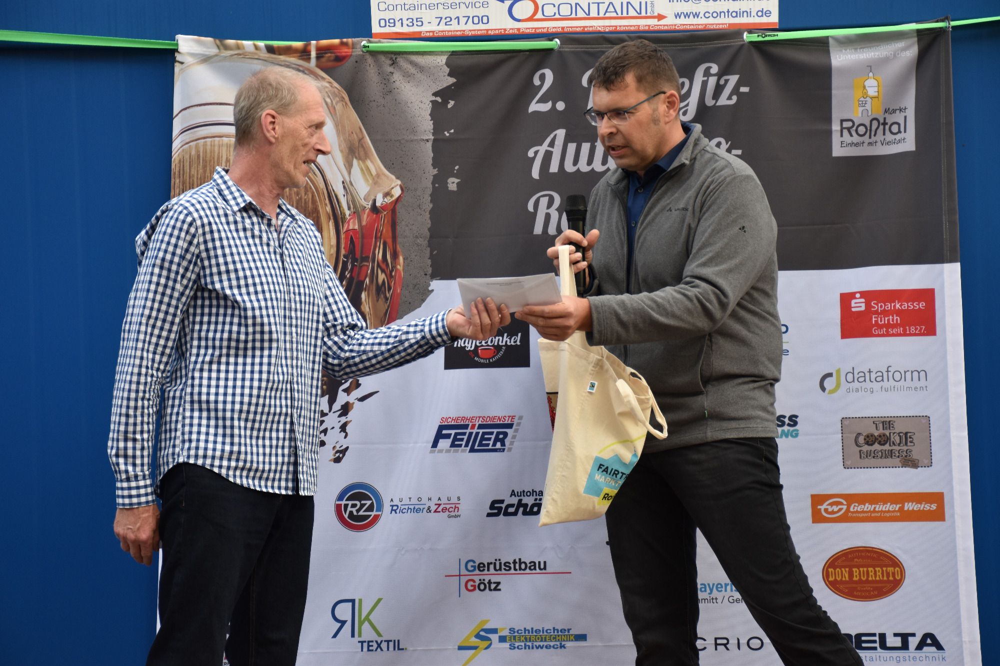 Begrüßen konnten wir, den 1. Bürgermeister des Markt Roßtal und Schirmherr des Autokino Roßtal Rainer Gegner, Herr Gegner war auch Vertreter der Bürgerstiftung Roßtal. Weiterhin anwesend waren Vertreter der Fürther Tafel und des Frauenhaus Fürth.